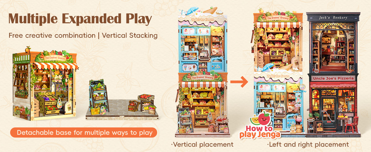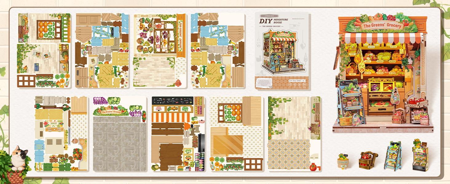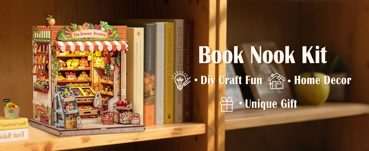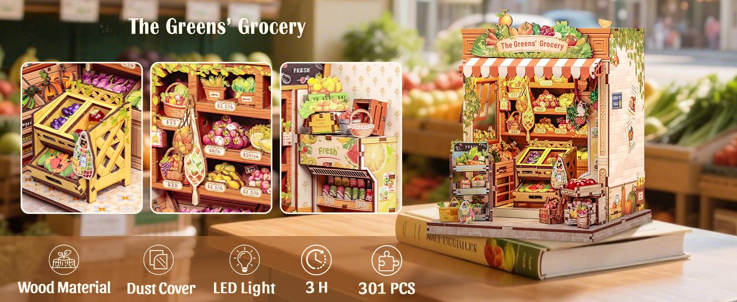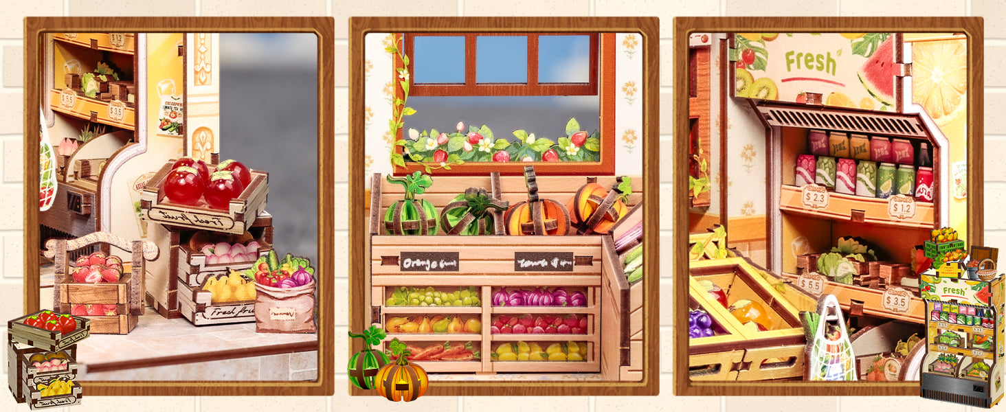 Step into Grimm Brothers’ Grocery, a charming DIY book nook miniature house that brings to life the everyday warmth of a countryside market. Crafted from eco-friendly wooden materials, it includes vibrant fruit and vegetable accessories, shelves, and cozy lighting to create an inviting mini-world.