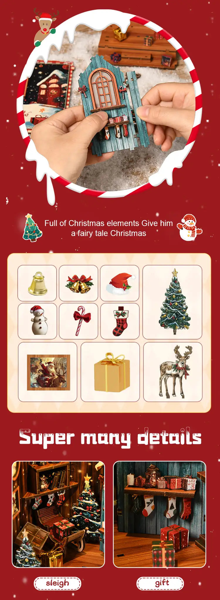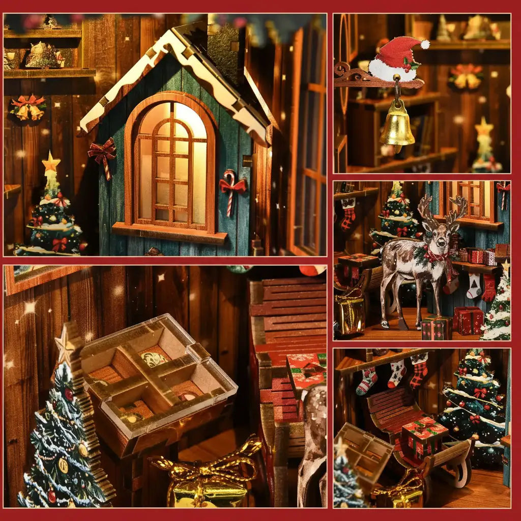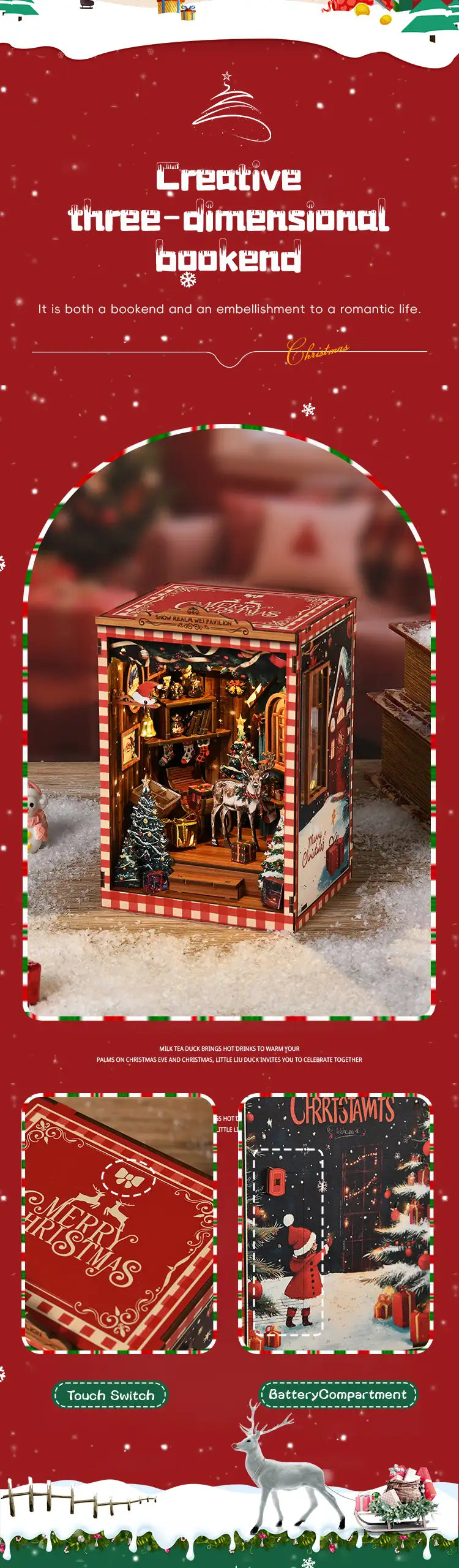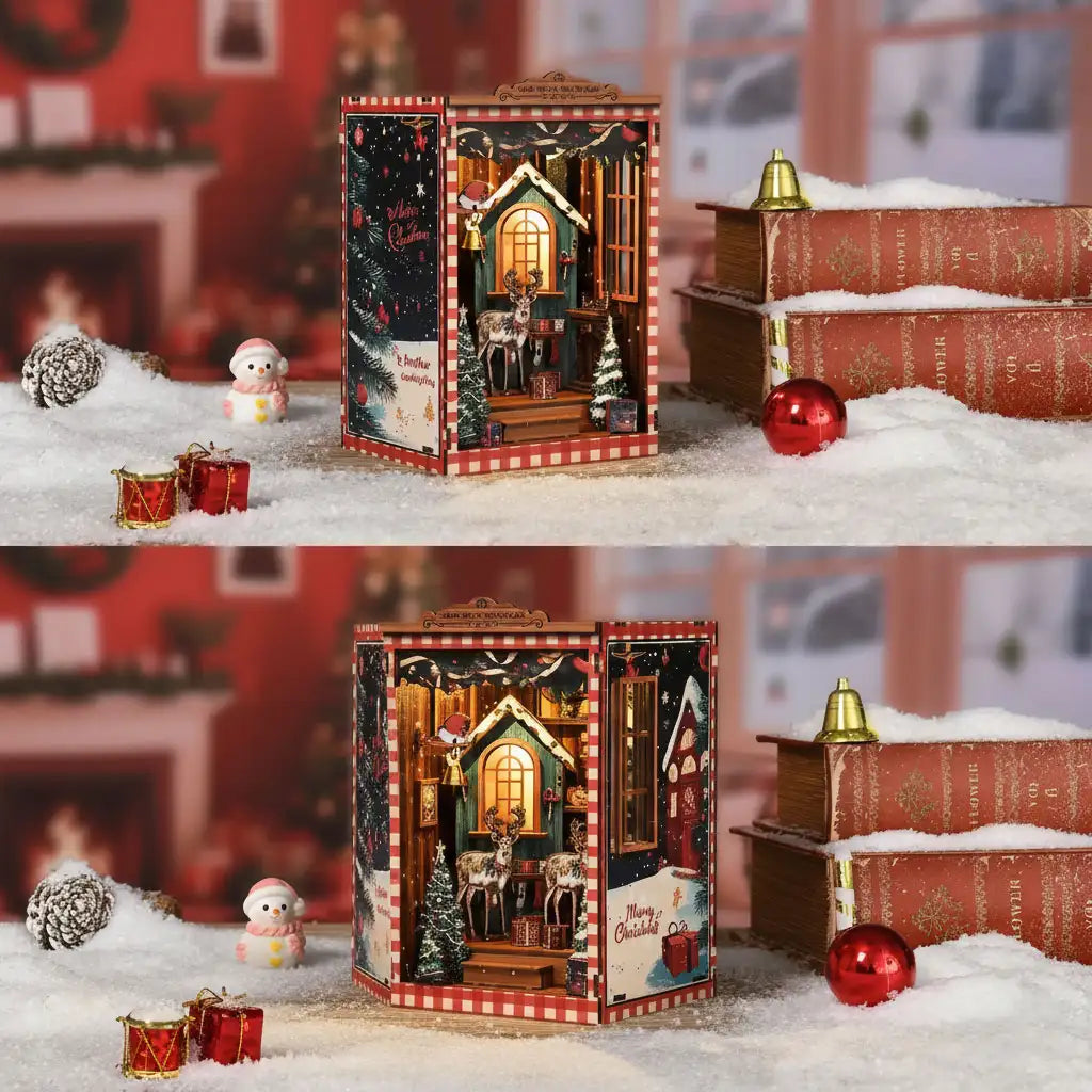 Celebrate the season with this Christmas Edition DIY Book Nook Kit — a miniature house bookshelf insert with LED lighting and holiday details.