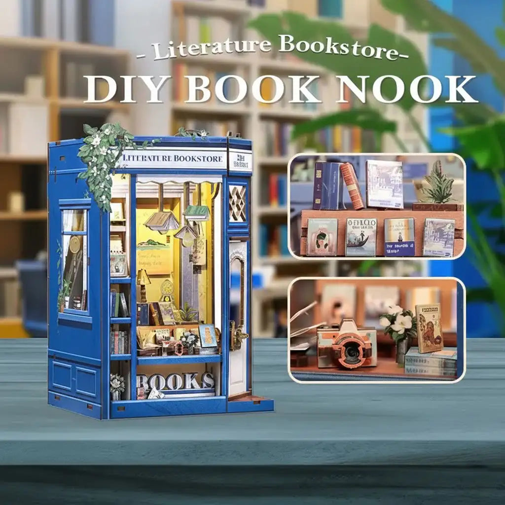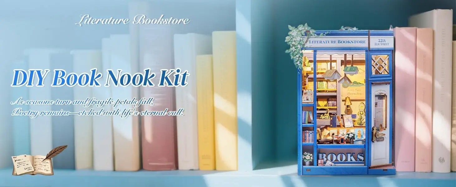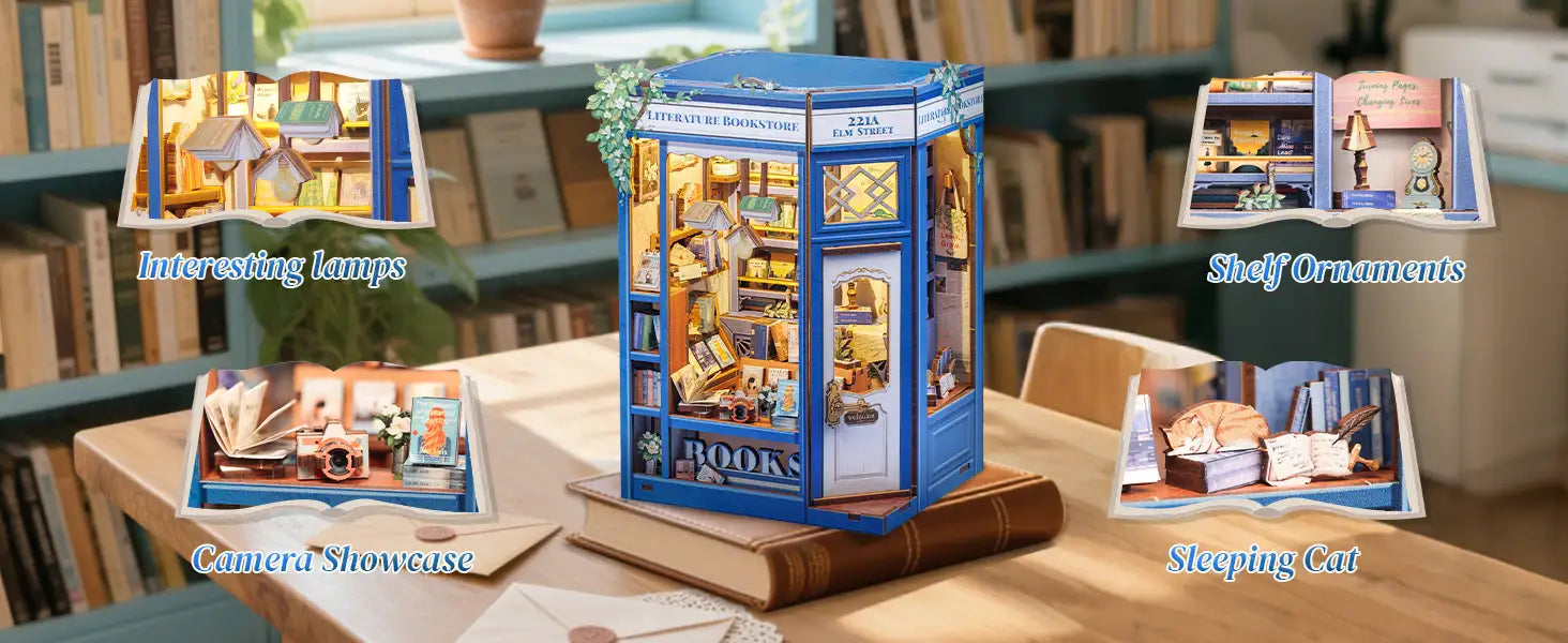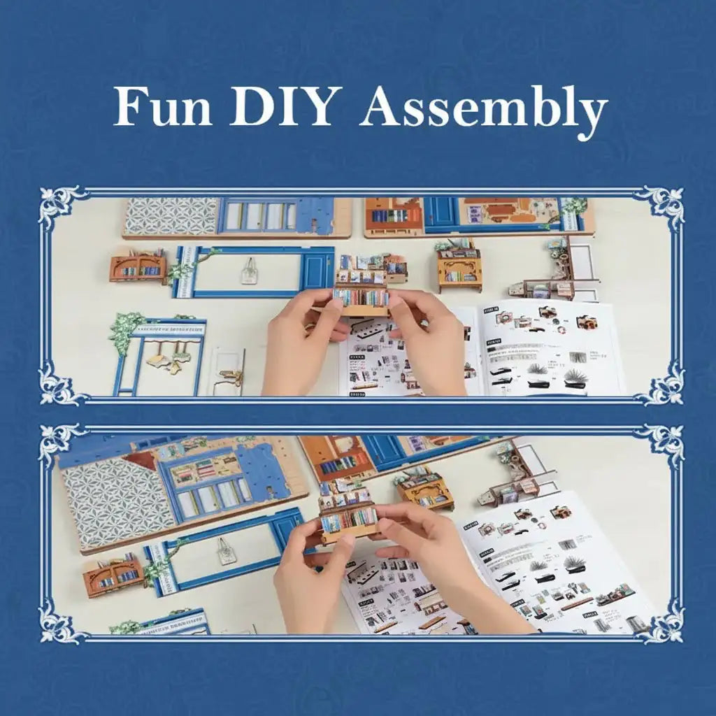 Explore the charm of a literary hideaway with our DIY Book Nook – Literature Library, part of the Mini Book House Series. This wooden miniature house kit offers a peaceful, story-filled scene—a miniature library tucked in your bookshelf, where books meet artistry.