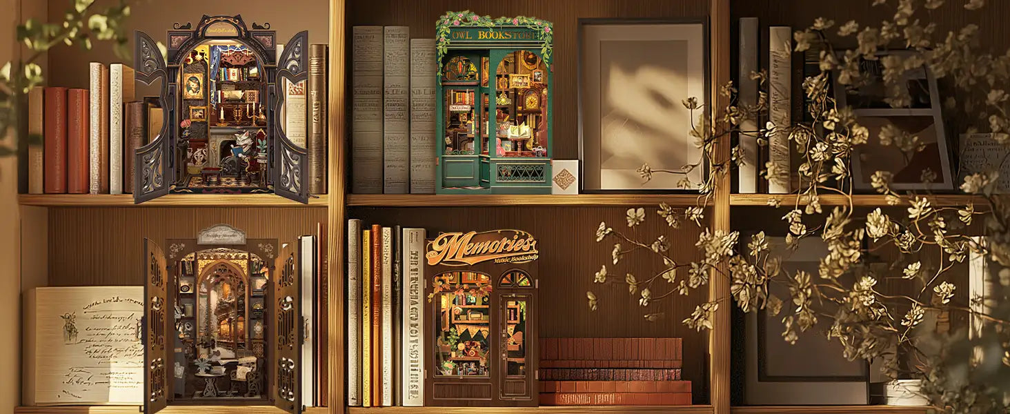 This DIY miniature house features an easy snap-fit structure, making it beginner-friendly and enjoyable for family bonding or creative crafting time. Once assembled, it transforms into an enchanting bookshelf decor piece, perfect for collectors, book lovers, and gift givers alike.