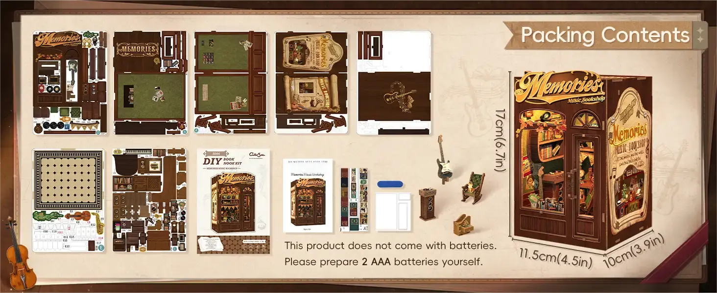 The DIY Book Nook Memories Music Bookshop from the Mini Book House Series is a beautifully designed wooden miniature house kit that recreates the warmth of a cozy music-themed bookstore. With its soft lighting, musical details, and intricate shelves, it captures the magic of reading in harmony with melody.