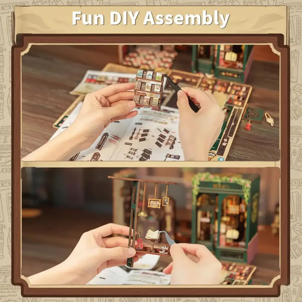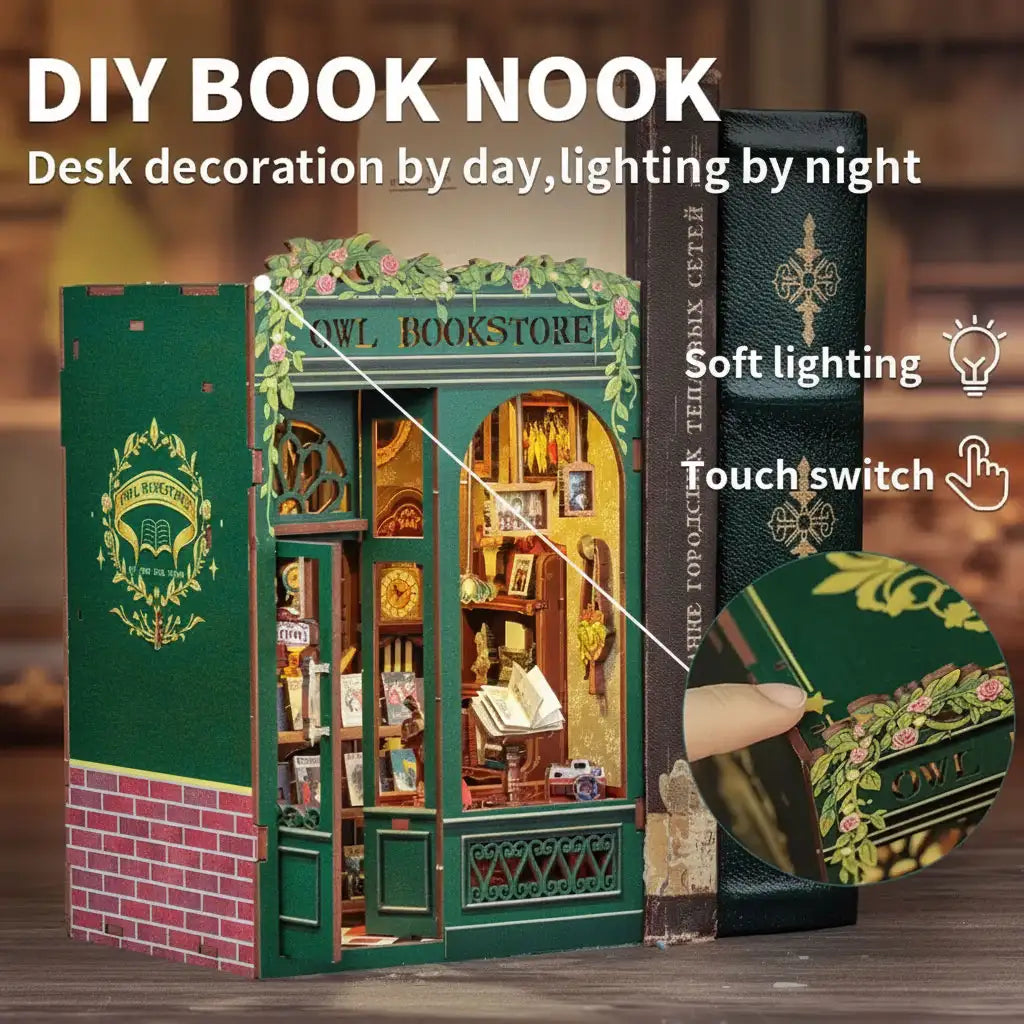 Step into a world of wonder with this DIY Book Nook – Owl Bookstore Miniature House. Inspired by cozy reading corners and magical libraries, this model recreates a vintage bookstore scene filled with charm and imagination.
