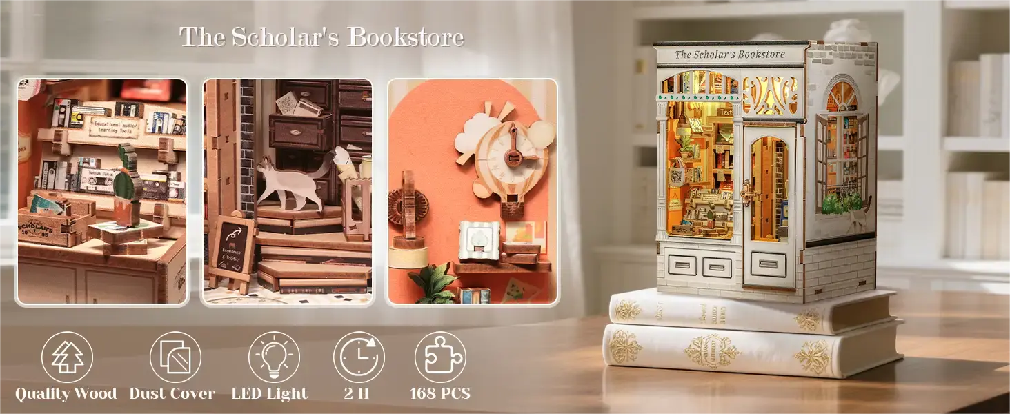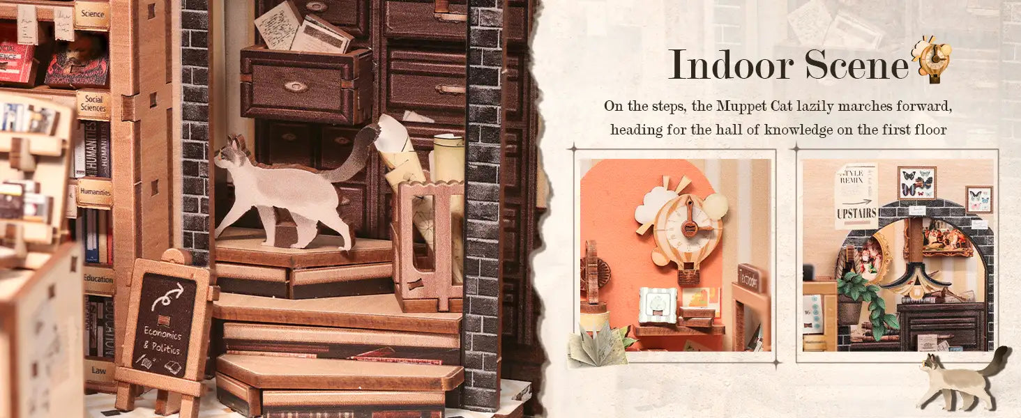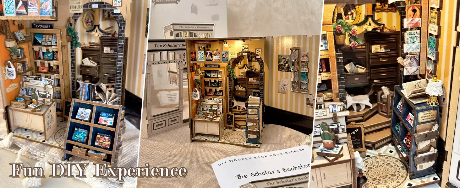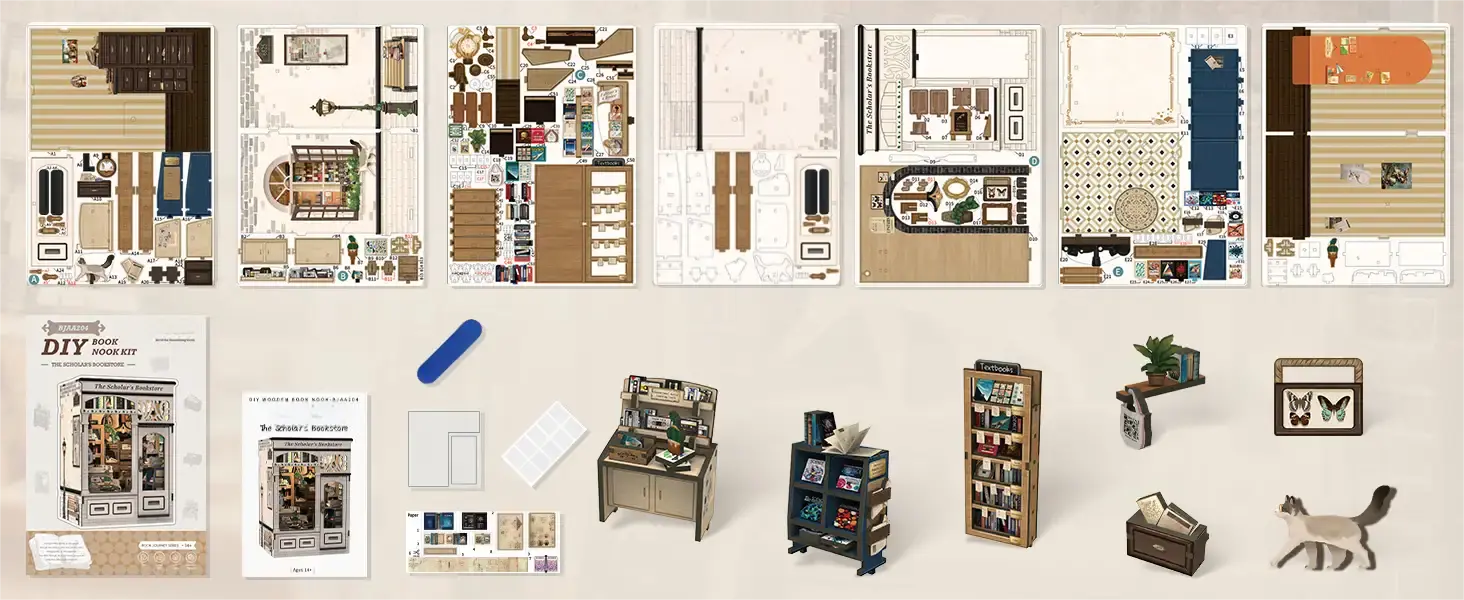 Featuring an easy snap-fit assembly design, even beginners can enjoy the process of creating their own library-themed diorama. Once completed, this model becomes a beautiful bookshelf décor piece, ideal for gifting or personal display. It’s especially designed for fans of DIY miniature house kits, book nook kits, and bookshelf insert décor.