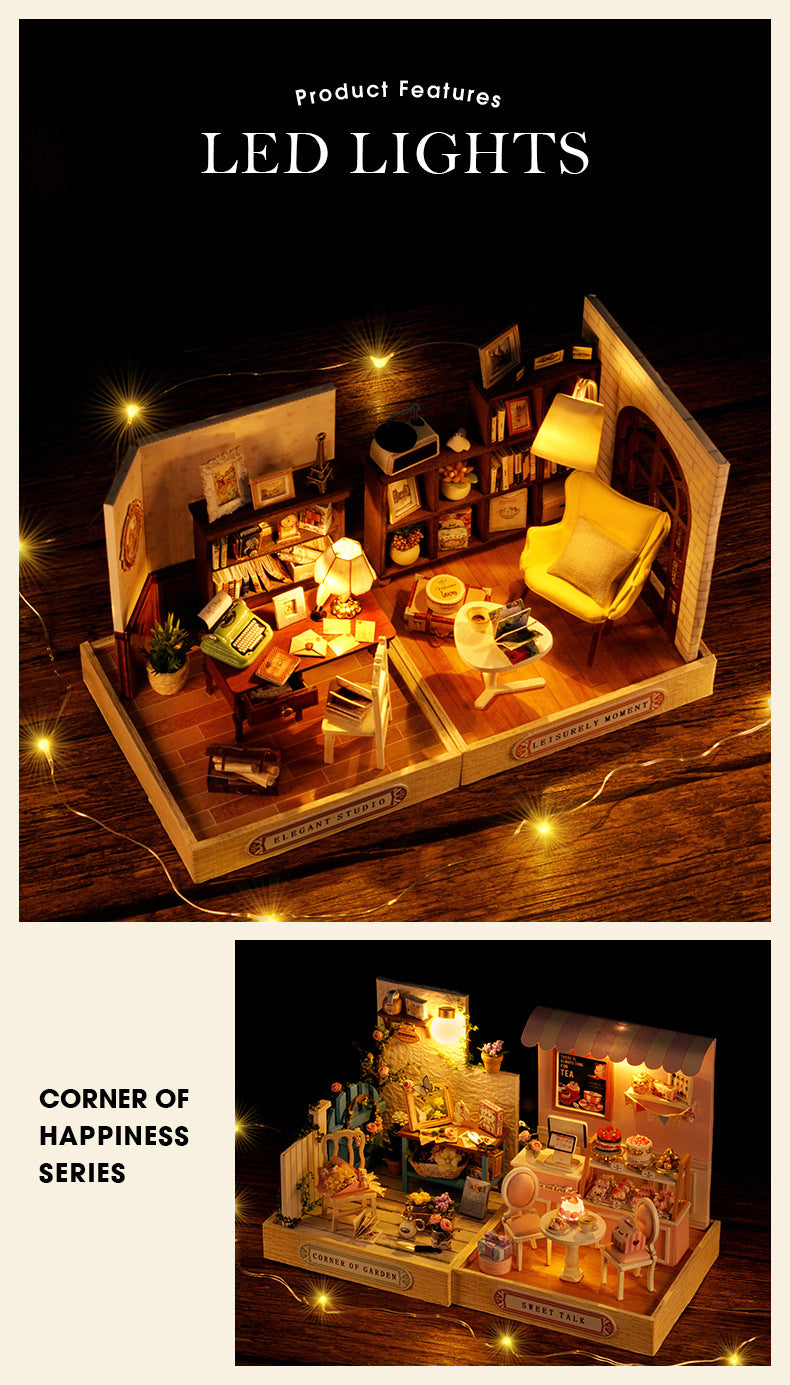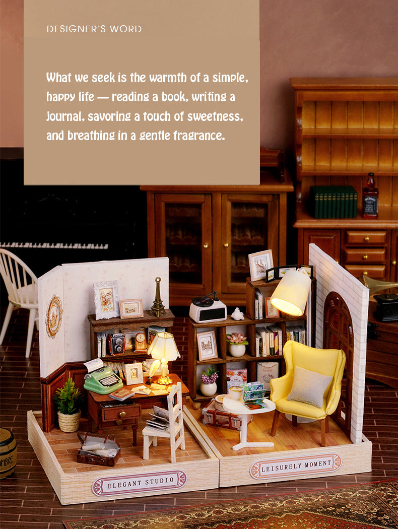 Step into creativity with the Elegant Studio DIY Miniature House Kit — a charming book nook that captures the beauty of an artist’s workspace. Featuring realistic wooden furniture, glowing LED lights, and intricate accessories, this 3D wooden puzzle transforms your bookshelf into a miniature masterpiece. Perfect for relaxing weekends, enhancing focus, or gifting to crafters and art lovers.