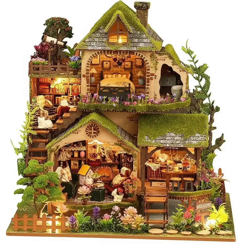 Step into a realm of creativity with the DIY Miniature House – Magic Study Room Kit. This precisely crafted wooden kit invites you to build a tiny world filled with shelves of books, vintage furniture, soft lighting and immersive detail.