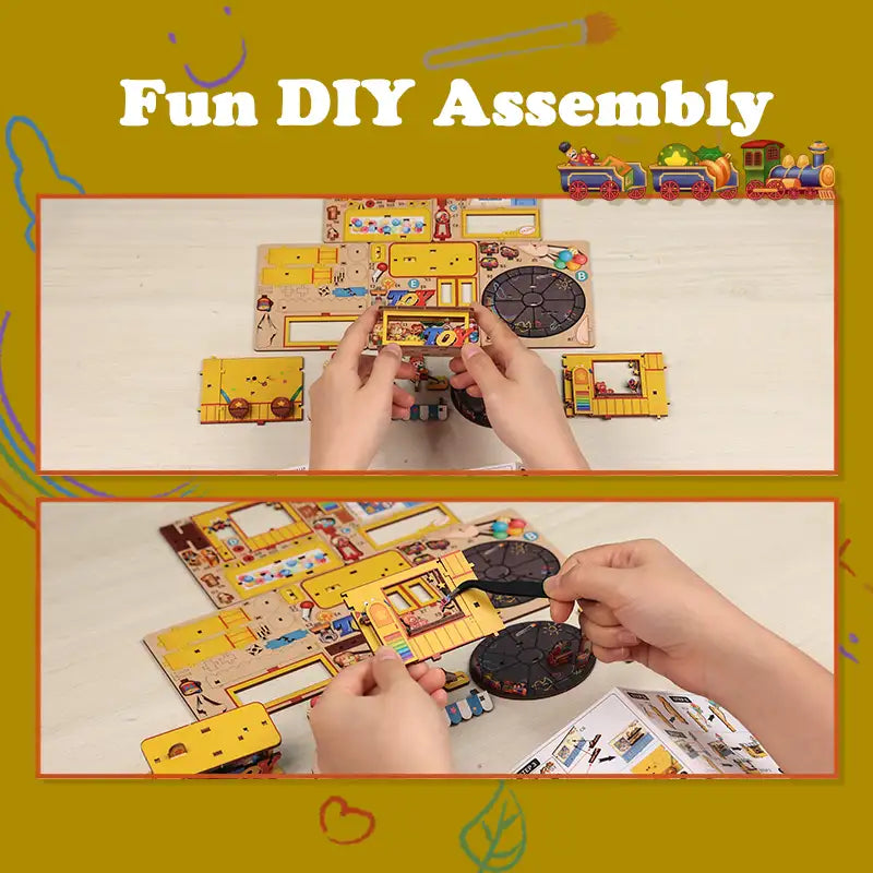 The Story Box Corner Amusement Park DIY Miniature House brings happiness and creativity to your tabletop. Designed with colorful amusement park elements, this wooden 3D puzzle recreates a joyful carnival scene with a Ferris wheel, balloons, and playful architecture.